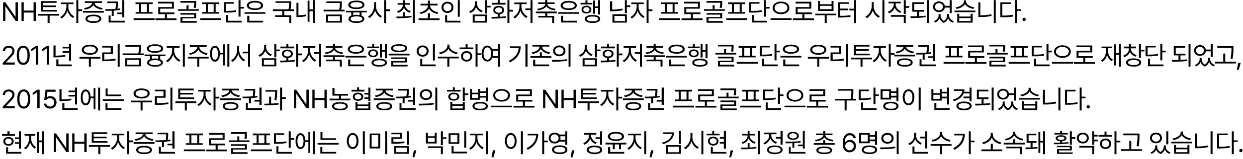 NH투자증권 프로골프단 HISTORY